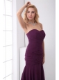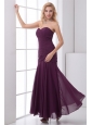 Column Sweetheart Ankle-length Chiffon Purple Prom Dress with Ruching