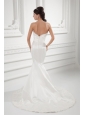 Home >  Wedding Dresses >  Perfect Wedding Dresses > Column Sweetheart Appliques Court Train Satin Wedding Dress