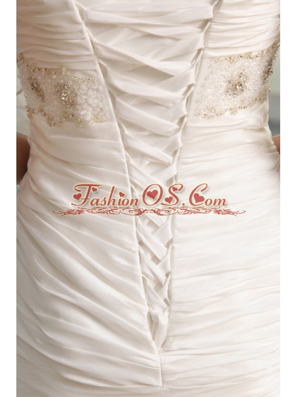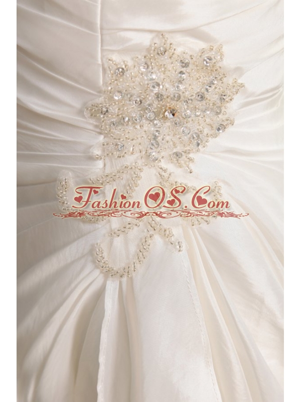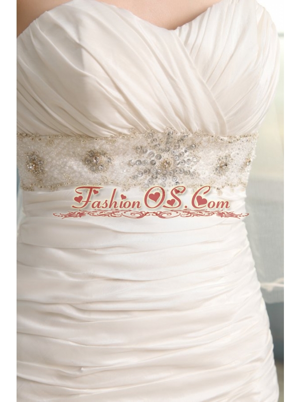 Column Sweetheart Beaded Decorate Taffeta Sweep Train Wedding Dress