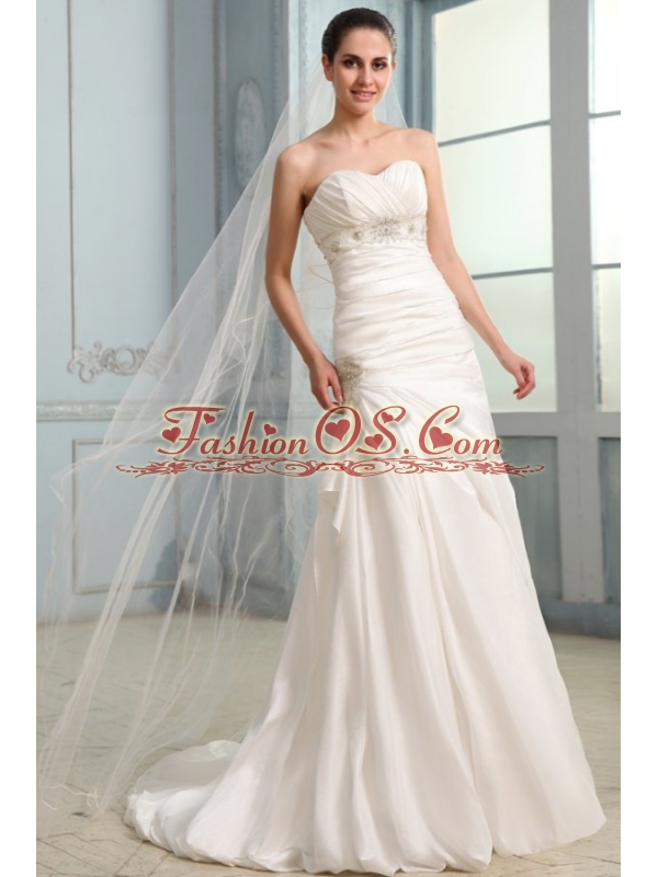 Home >  Wedding Dresses >  Perfect Wedding Dresses > Column Sweetheart Beaded Decorate Taffeta Sweep Train Wedding Dress