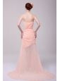 Column Sweetheart Beading and Ruche Peach prom Dress with High Silt