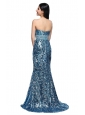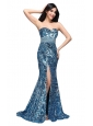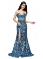 Home >  Prom Dresses >  Beautiful Prom Dresses > Column Sweetheart Blue Sequins High Slit Brush Train Prom Dress