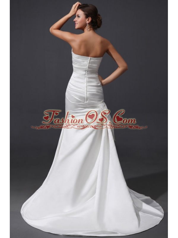 Column Sweetheart Brush Train Bowknot and Ruching Wedding Dress