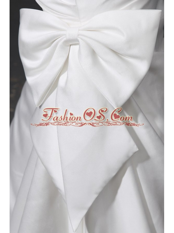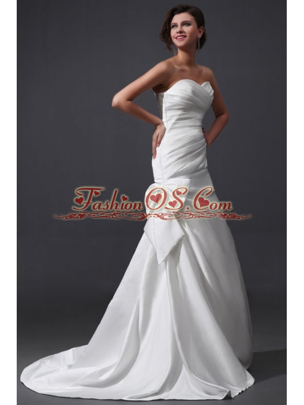 Home >  Wedding Dresses >  Perfect Wedding Dresses > Column Sweetheart Brush Train Bowknot and Ruching Wedding Dress