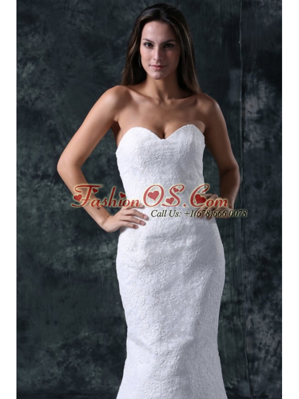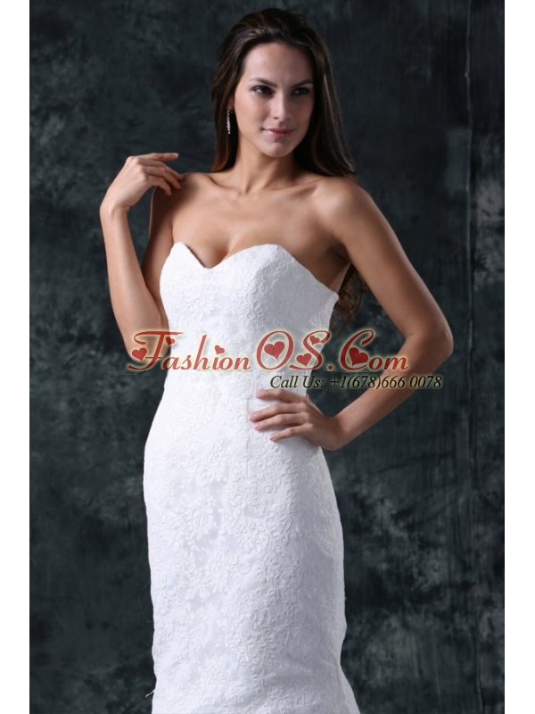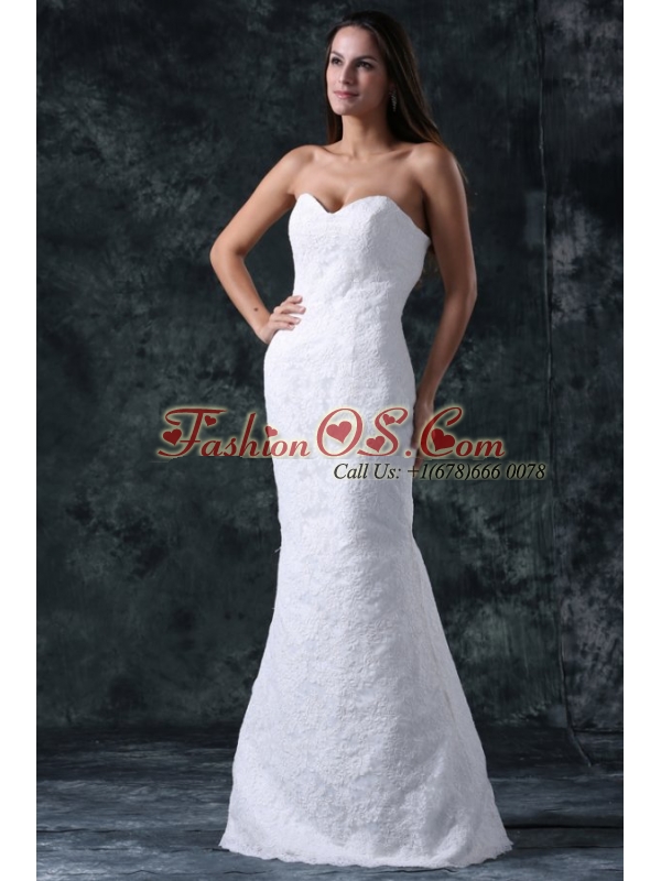 Home >  Wedding Dresses >  Perfect Wedding Dresses > Column Sweetheart Floor-length Lace White Wedding Dress
