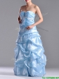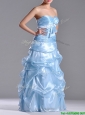 Column Sweetheart Long Light Blue Beaded Ruched Prom Dress in Organza
