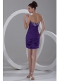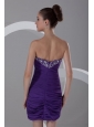 Column Sweetheart Mini-length Purple Chiffon Prom Dress with Beading