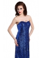 Column Sweetheart Royal Blue Sequins High Slit Brush Train Prom Dress