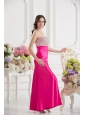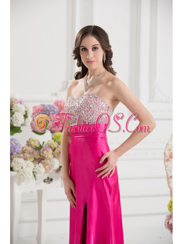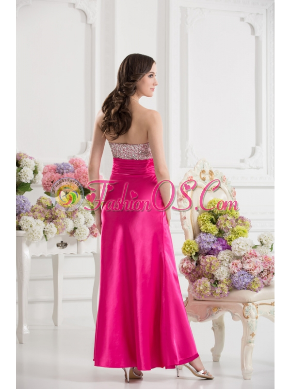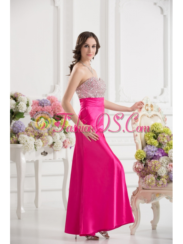 Column Sweetheart Taffeta Beading Hot Pink Ankle-length Prom Dress