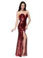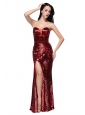 Home >  Prom Dresses >  Sexy Prom Dresses > Column Sweetheart Wine Red Sequins High Slit Prom Dress