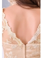 Home >  Prom Dresses >  Fashionable Prom Dresses > Column V neck Short Sleeves Brush Train Champagne Appliques Prom Dress