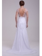 Column V-Neck Beading Brush Train Chiffon Wedding Dress
