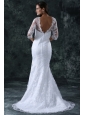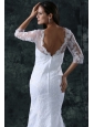 Column V-Neck Brush Train Appliques Lace Wedding Dress with Half Sleeves