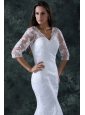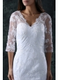 Home >  Wedding Dresses >  Perfect Wedding Dresses > Column V-Neck Brush Train Appliques Lace Wedding Dress with Half Sleeves