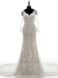 Home >  Wedding Dresses >  Perfect Wedding Dresses > Column V-Neck Open Back Lace Wedding Dress with Court Train