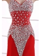 Column Wine Red Beading Straps Court Train Chiffon Prom Dress