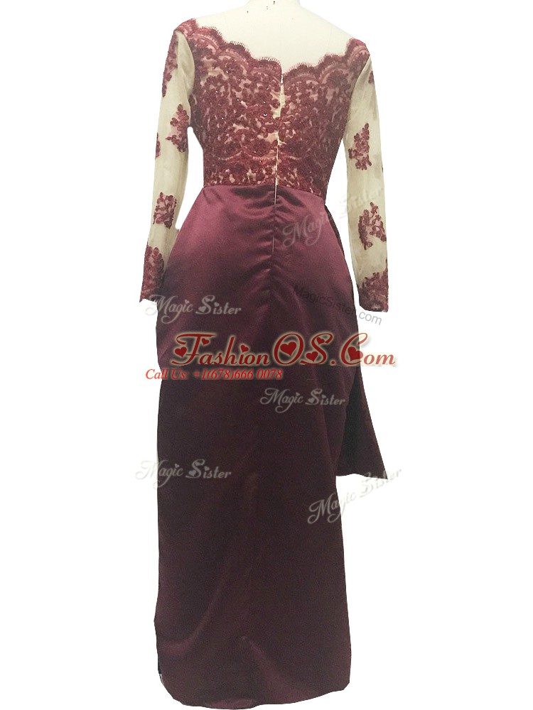 Column/Sheath Mother Of The Bride Dress Burgundy Scalloped Taffeta Long Sleeves Floor Length Zipper