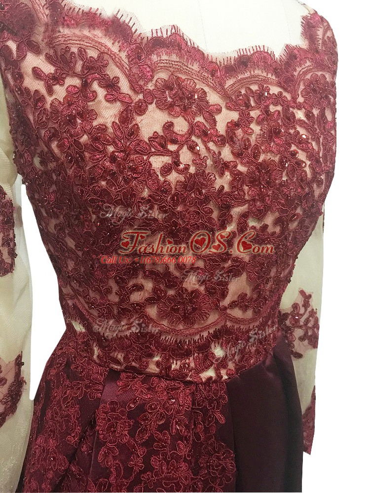 Home >  Special Occasion Dresses >  Elegant Mother of the Bride Dresses > Column/Sheath Mother Of The Bride Dress Burgundy Scalloped Taffeta Long Sleeves Floor Length Zipper
