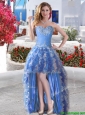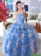 Comfortable Applique and Ruffled Detachable Quinceanera Dresses in Blue and White