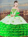 Comfortable Ball Gowns Quinceanera Gown Green Sweetheart Organza Sleeveless Floor Length Lace Up