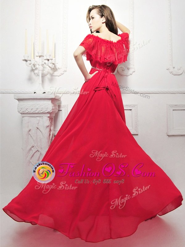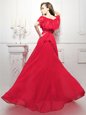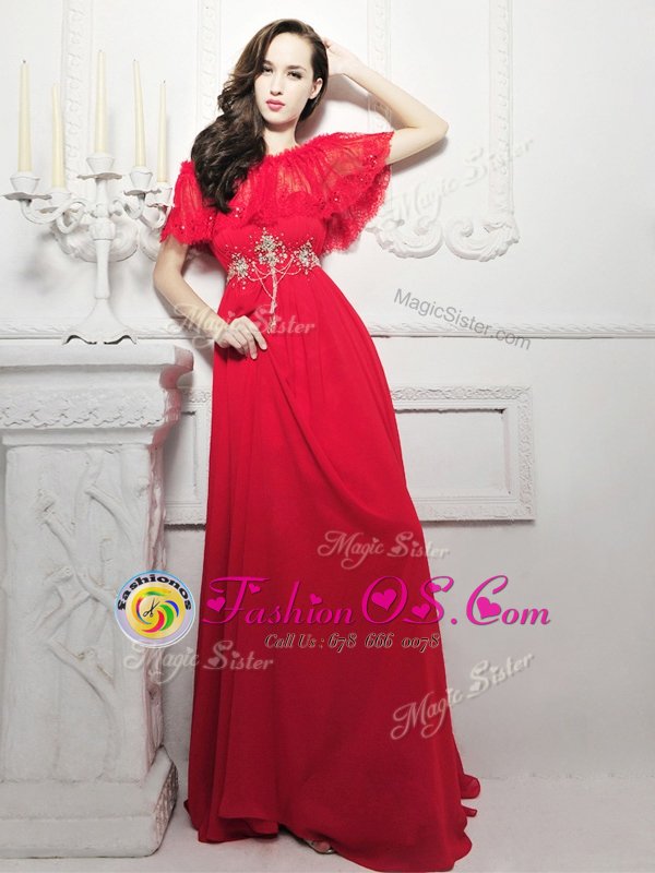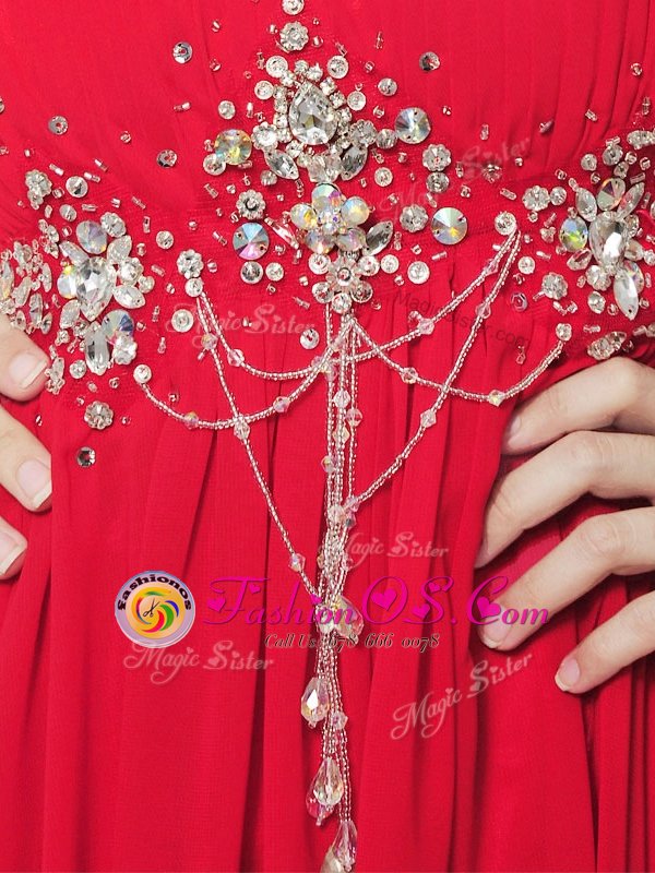 Home >  Prom Dresses >  Perfect Prom Dresses > Comfortable Beading Prom Dresses Red Zipper Sleeveless Sweep Train