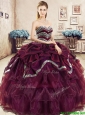 Comfortable Burgundy Quinceanera Dress with Beading and Pick Ups