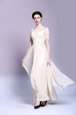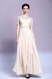 Comfortable Chiffon Bateau Sleeveless Zipper Beading and Appliques and Ruching Prom Dress in Champagne