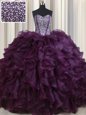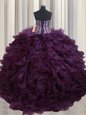 Comfortable Dark Purple Sleeveless Beading and Ruffles Floor Length 15 Quinceanera Dress