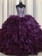 Home >  Quinceanera Dresses >  Luxurious Quinceanera Dresses > Comfortable Dark Purple Sleeveless Beading and Ruffles Floor Length 15 Quinceanera Dress