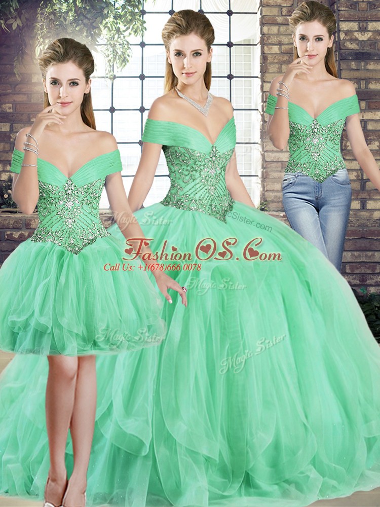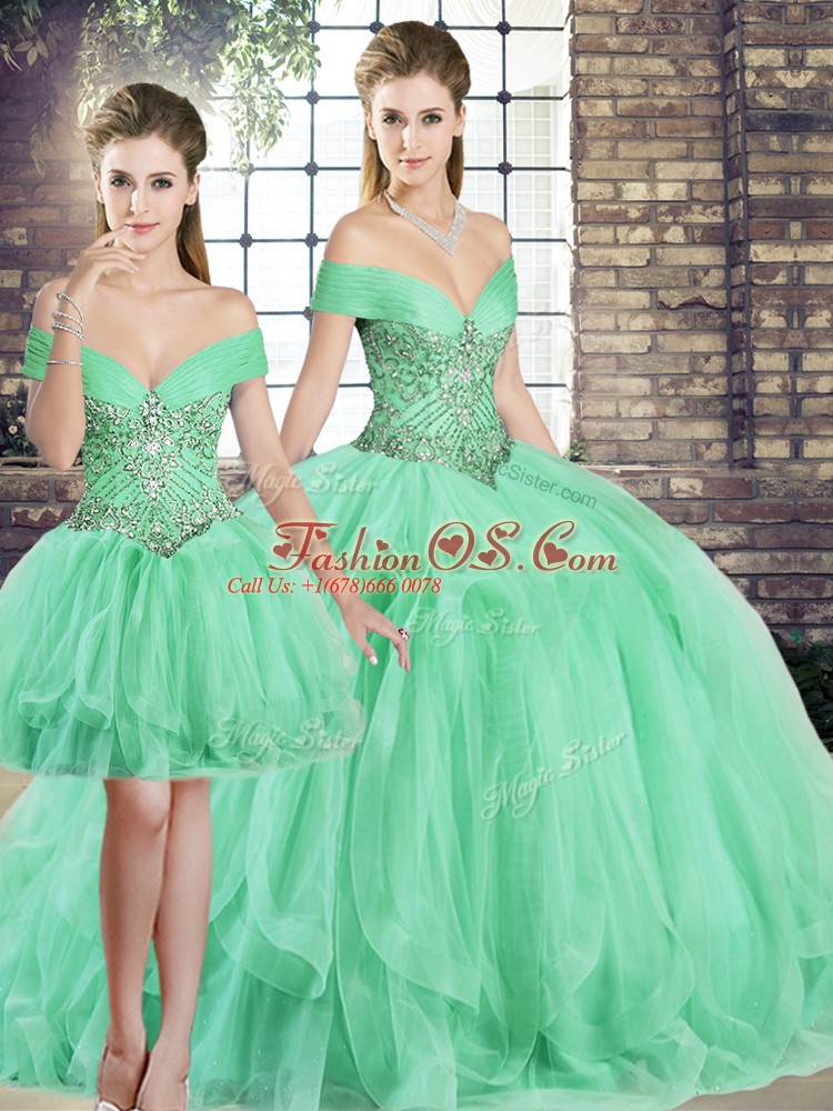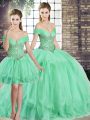Comfortable Floor Length Apple Green Quinceanera Dress Tulle Sleeveless Beading and Ruffles