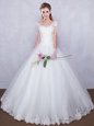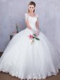 Comfortable Floor Length Ball Gowns Short Sleeves White Wedding Gowns Lace Up