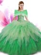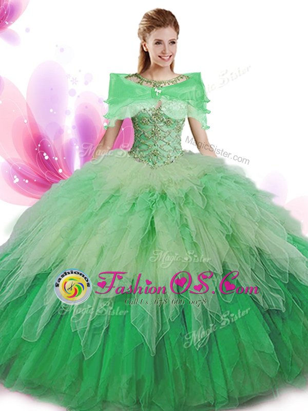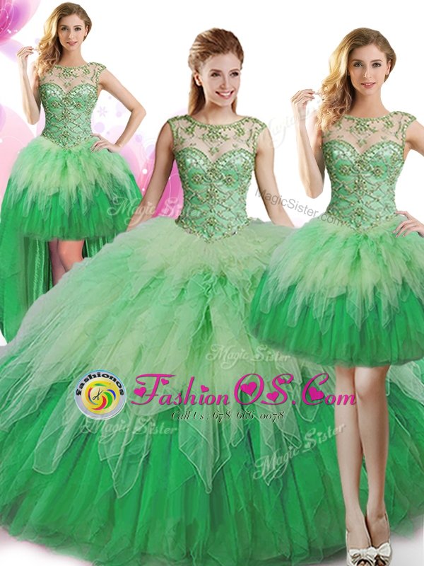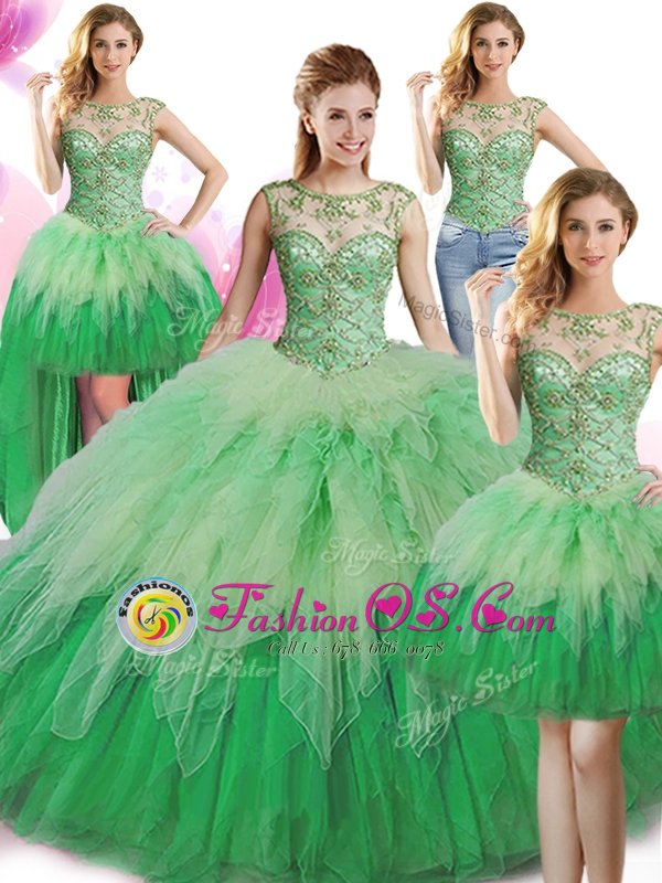 Home >  Quinceanera Dresses >  Detachable Quinceanera Skirts > Comfortable Four Piece Scoop Floor Length Ball Gowns Sleeveless Green Quinceanera Dress Lace Up