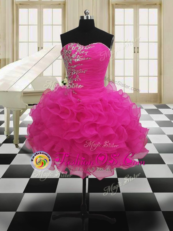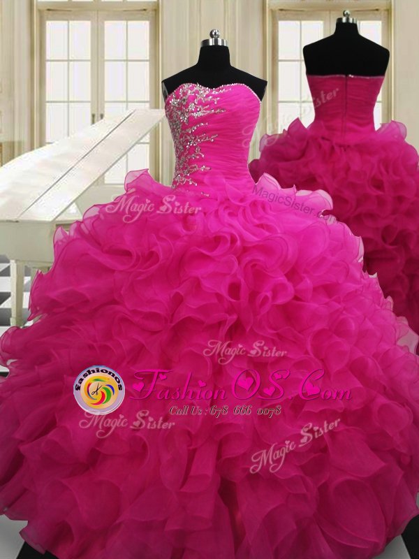 Comfortable Four Piece Sleeveless Floor Length Beading Zipper Quinceanera Gowns with Hot Pink
