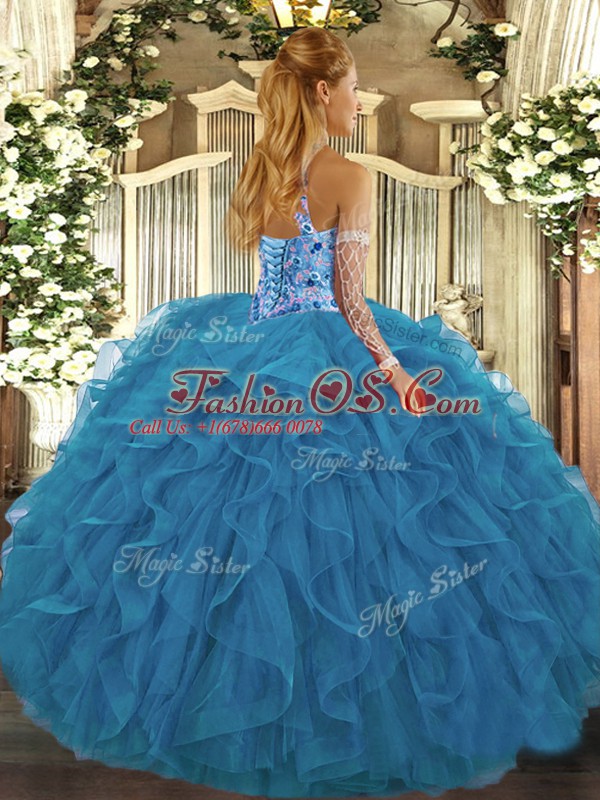 Comfortable Fuchsia Organza Lace Up Sweet 16 Dress Sleeveless Floor Length Beading and Embroidery and Ruffles
