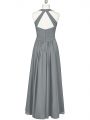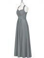 Comfortable Grey Empire Chiffon Halter Top Sleeveless Ruching Floor Length Zipper Dress for Prom