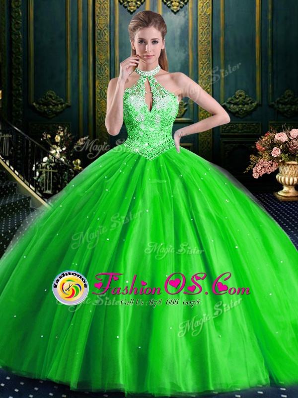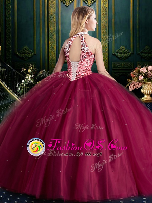 Comfortable Halter Top Sleeveless 15th Birthday Dress Floor Length Beading Tulle
