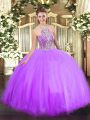 Home >  Quinceanera Dresses >  New Arrival Quinceanera Dresses > Comfortable Lilac Lace Up Halter Top Beading Quinceanera Gown Tulle Sleeveless