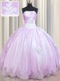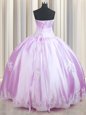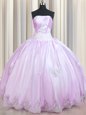 Comfortable Lilac Lace Up Strapless Beading and Appliques Quinceanera Dress Taffeta Sleeveless