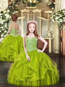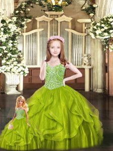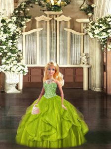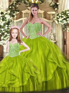 Comfortable Olive Green Lace Up Ball Gown Prom Dress Beading and Ruffles Sleeveless Floor Length