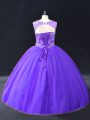 Comfortable Purple Tulle Lace Up Quinceanera Dress Sleeveless Floor Length Beading