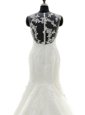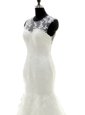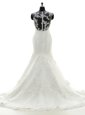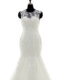 Comfortable Scoop Lace With Train Mermaid Sleeveless White Wedding Dress Brush Train Zipper