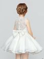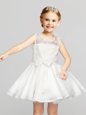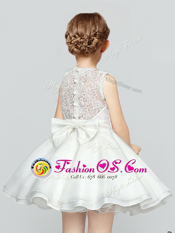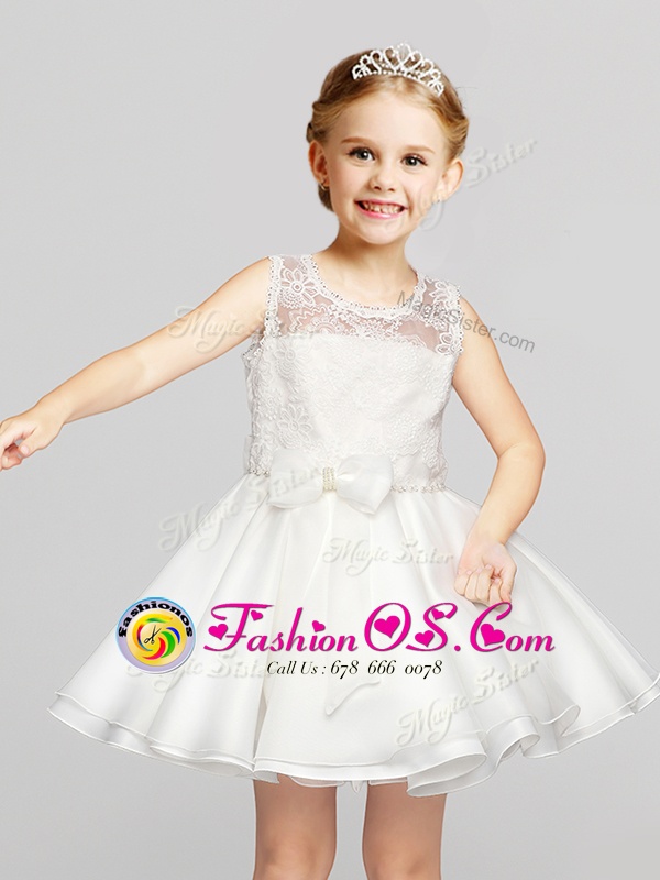 Comfortable Scoop White Clasp Handle Flower Girl Dresses Lace and Bowknot Sleeveless Mini Length