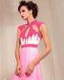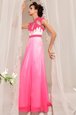 Comfortable Sleeveless Chiffon Floor Length Zipper Evening Dress in Hot Pink for with Beading