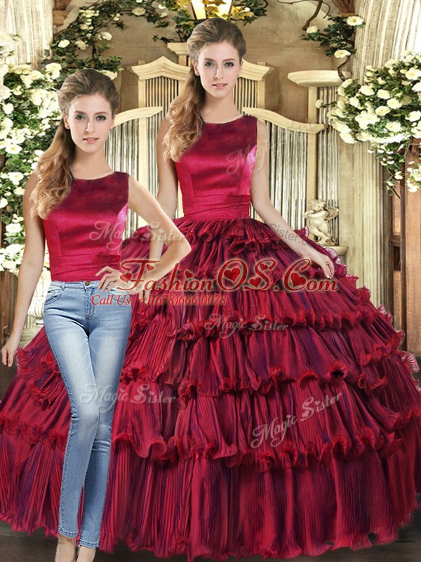 Home >  Quinceanera Dresses >  Detachable Quinceanera Skirts > Comfortable Sleeveless Organza Floor Length Lace Up Sweet 16 Dress in Wine Red with Ruffled Layers