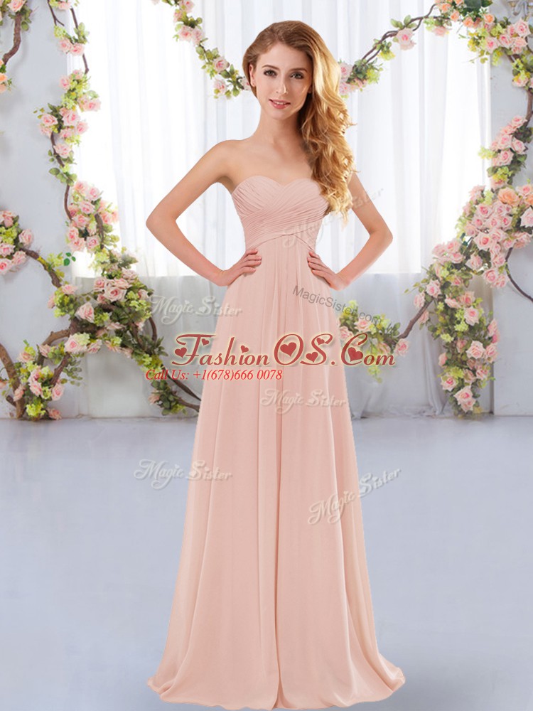 Comfortable Sweetheart Sleeveless Chiffon Court Dresses for Sweet 16 Ruching Lace Up