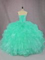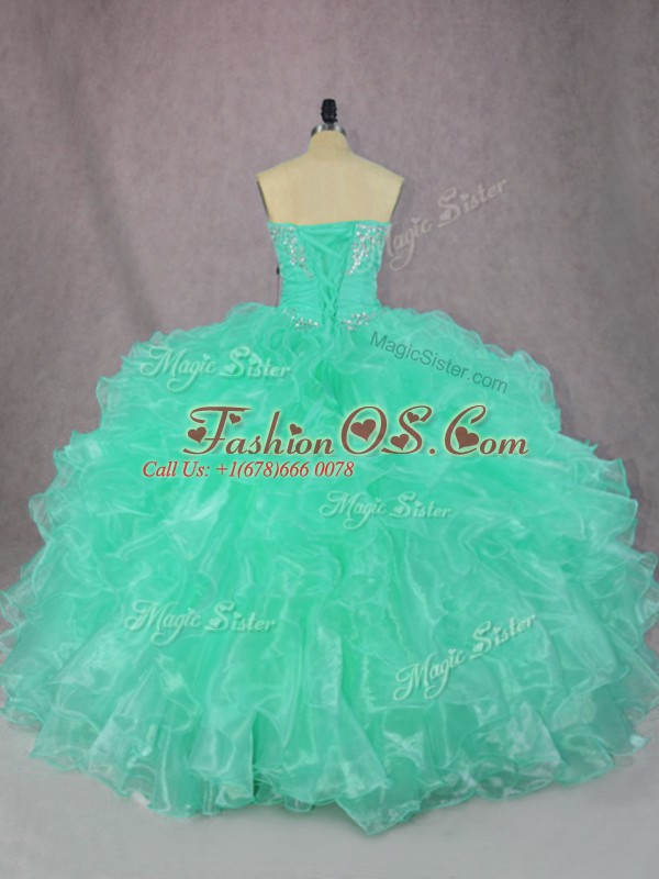 Comfortable Turquoise Lace Up Strapless Beading and Ruffles Quinceanera Gowns Organza Sleeveless