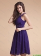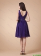 Comfortable V Neck Beading Short Prom Dress in Eggplant Purple