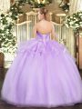 Comfortable V-neck Sleeveless Tulle Quince Ball Gowns Beading Lace Up