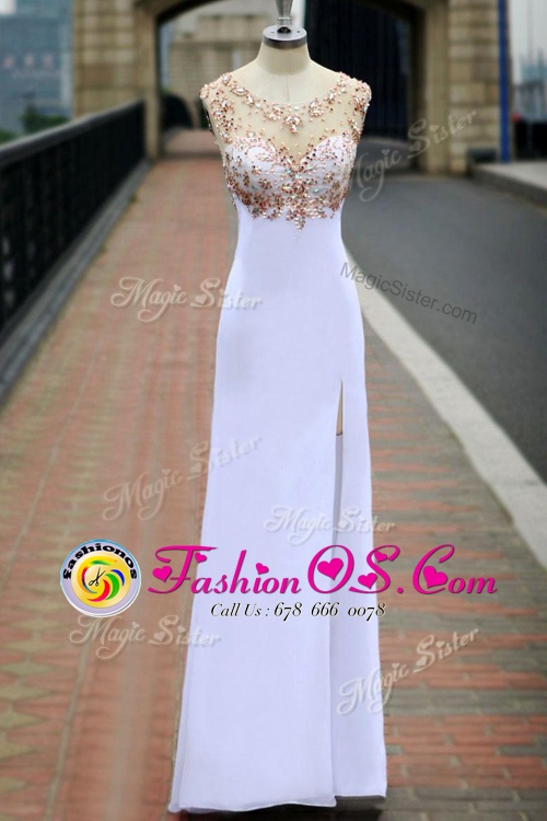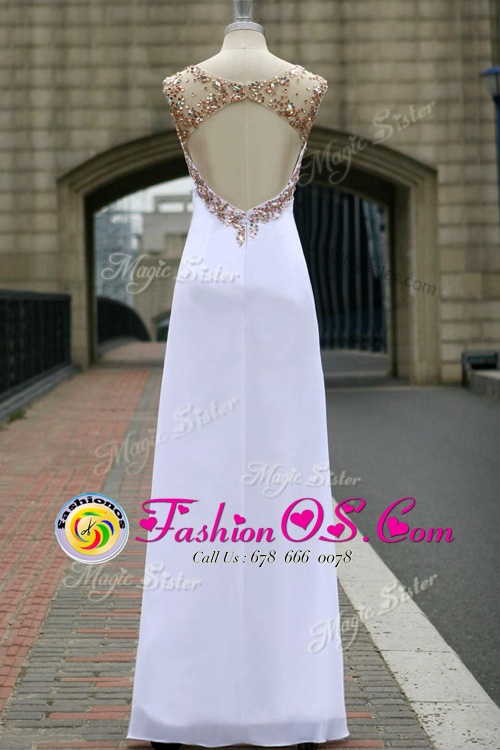 Comfortable White Scoop Backless Beading Prom Dresses Sleeveless