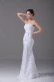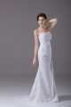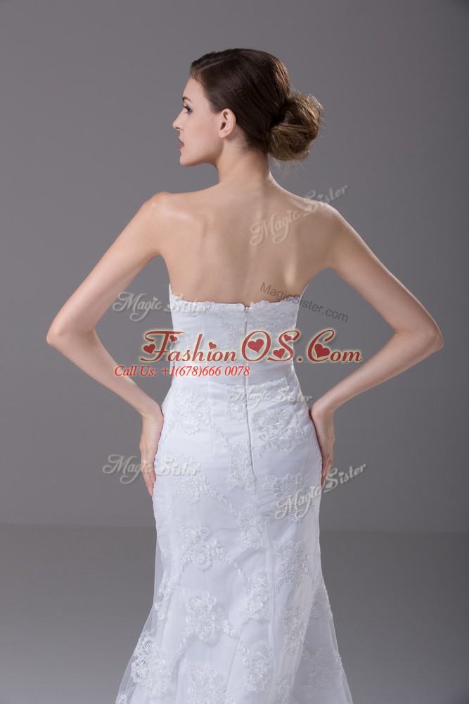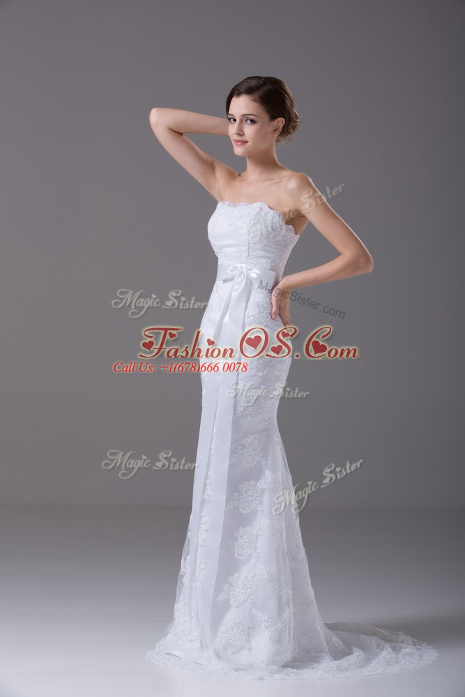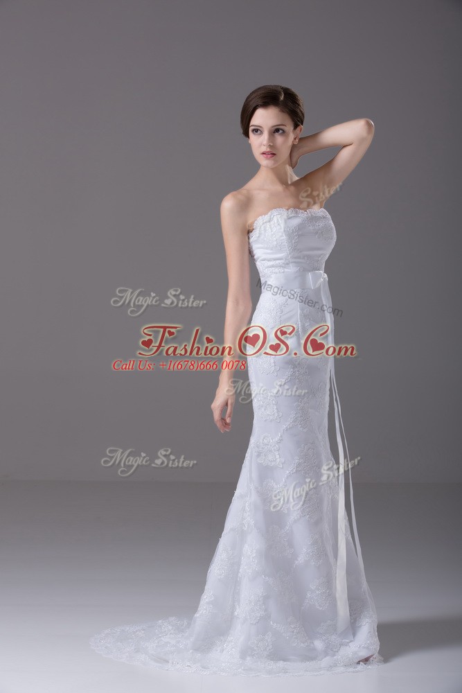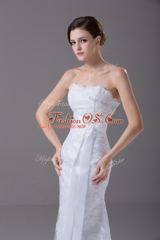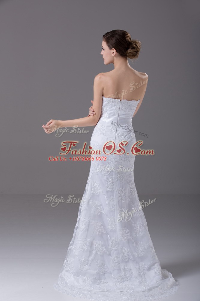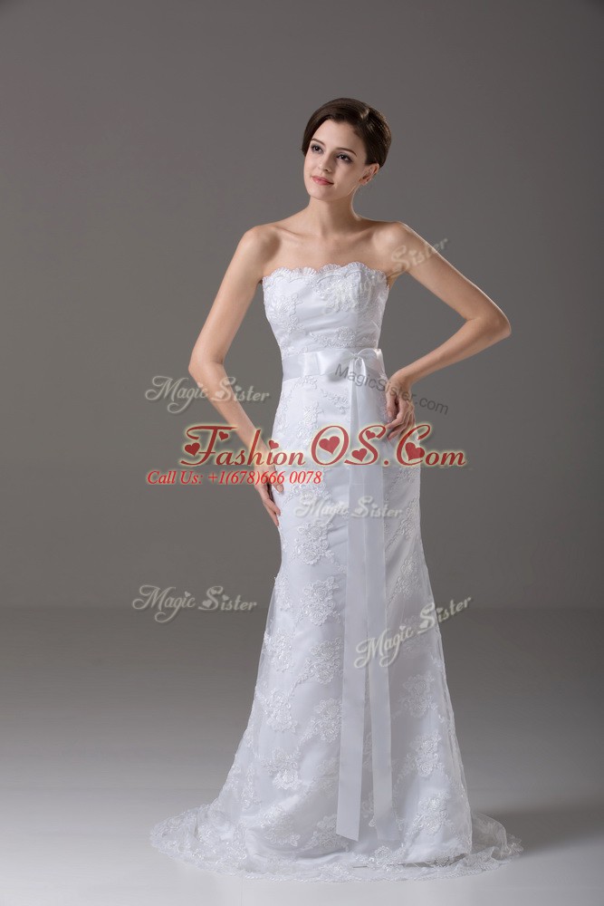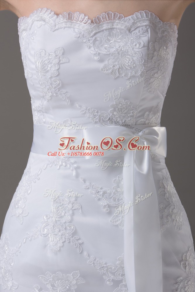 Comfortable White Sleeveless Lace and Belt Zipper Wedding Gown